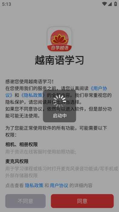 打开你的软件时,需要确认用户协议与隐私政策。