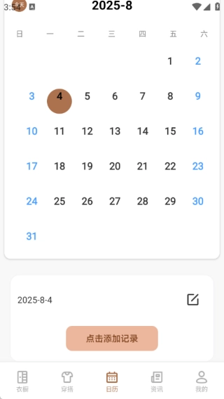3、档案记录,智能生成穿搭日历,方便用户回顾与规划。