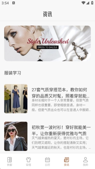 4、在资讯页面中知晓各类最新的穿衣资讯,用户可以轻松的掌握各类最全的资讯信息。