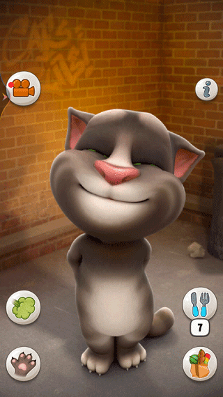9、按下电话按钮,让汤姆与原版的会说话的汤姆进行游戏,他会用滑稽的声音复述他自己的话。