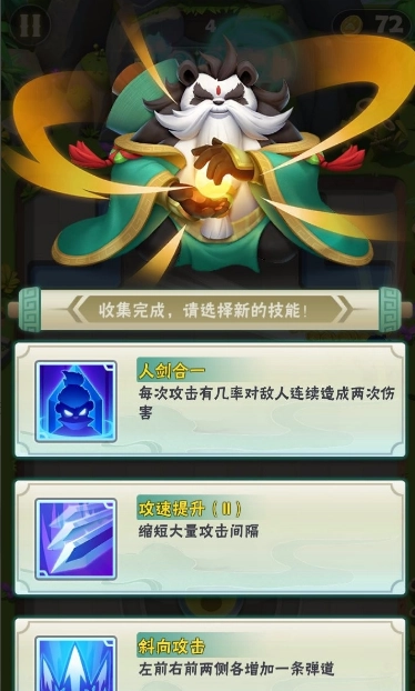 3.在关卡通关,收集完成可选择新的技能,如图所示