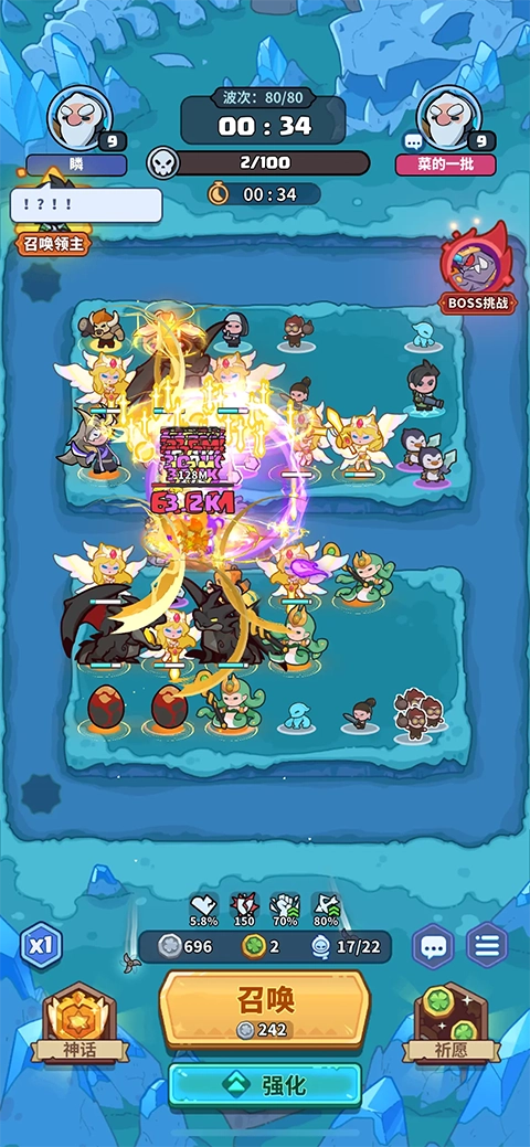 等两边加起来1个天使1个龙的时候稍微升级一下传说英雄等级,然后50关后留一组猎手,50~60一倍速操作合成天使,卡位置就把最后一组猎手卖掉。