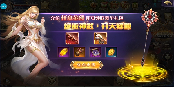两大职业升到13级后即可觉醒战神之力,瞬间化身战神。不仅战力瞬间提升,还能觉醒新形象,自动换上战神装备。勇士可对战神进阶培养,等级越高的战神,其战斗力越强大。觉醒战神之力可以从刷怪、击杀boss中获得,只要战神之剑力量蓄满,玩家可随时随地化身战神,击杀敌人!