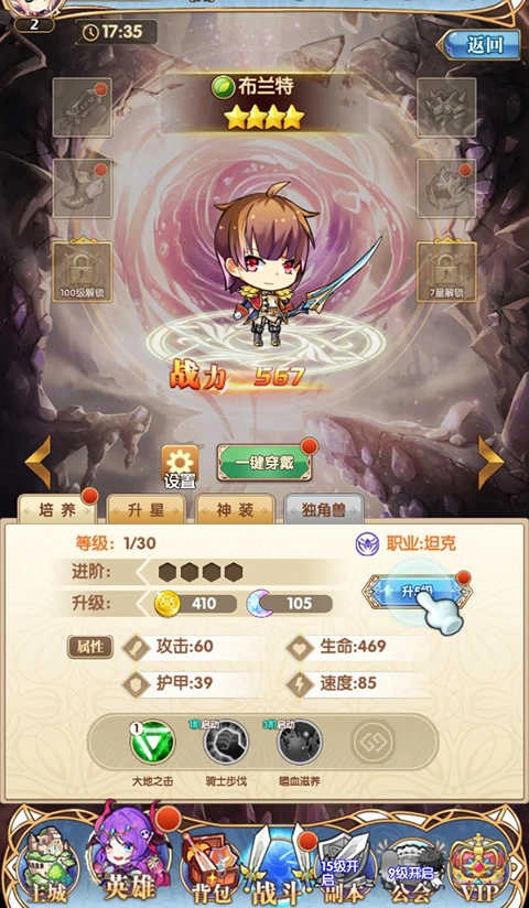 6、最后就是英雄的培养了,可以对英雄进行升级、升星等,还需要给英雄穿戴好装备,提升战力,完成后就可以去PK或者刷副本了。