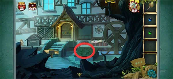 退出水井 我们可以看到地图右边有一个秋千 然后用小刀把绳子割断 得到绳子