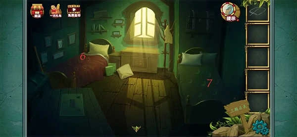 进入卧室 根据提示拾取扫把 抹布 盒子 掀开床得到木板以及打开箱子得到铲子