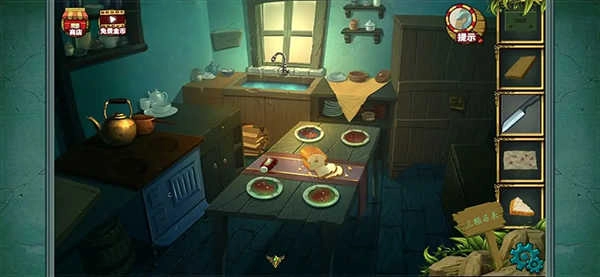 打开柜子获得红色的珠子 再回到厨房 用面包屑 木板和捕鼠器零件组成捕鼠器 放到碗柜下面的老鼠洞 放上去后退出去 再点进来会获得一个钥匙(我忘记截图了 只剩一个空的老鼠夹了)