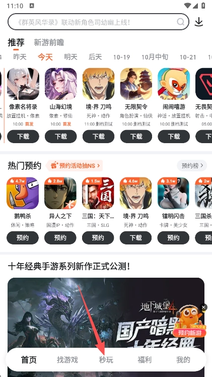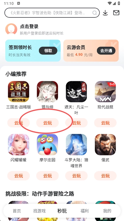 2、在这里您可以看到海量的云玩游戏,都是可以秒玩的
