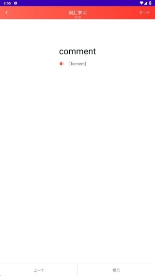 5、点击开始学习,查看单词内容,了解中文意思,一键跟读。
