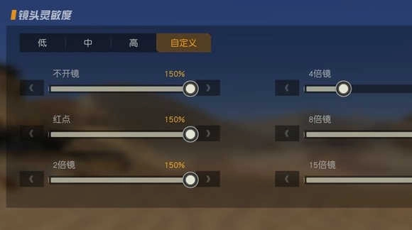 2、灵敏的的设置是分好几种种类的,第一种是镜头的灵敏度设置,在游戏里面镜头的灵敏度是指有倍镜和没有倍镜的情况。