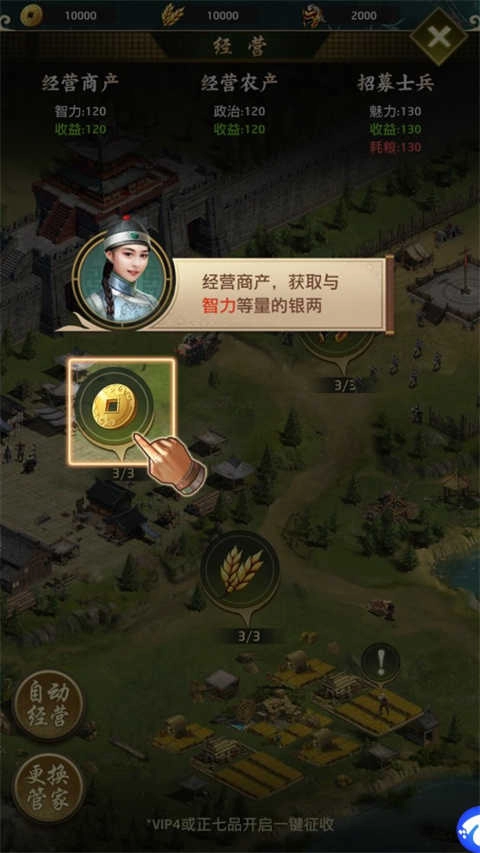 通过经营各类产业获取充足的银两,可用于提升门客实力或扩充兵力,助你快速壮大势力。