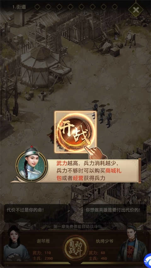 武力值高意味着更低的兵力损耗,兵力不足时可通过商城礼包或产业经营来及时补充,确保战场优势。