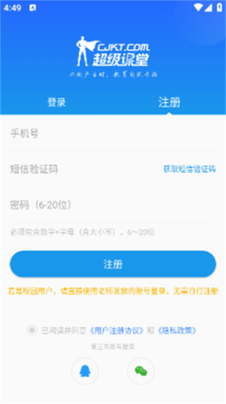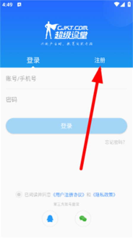 2、有账号的小伙伴就可以直接进行登录,没有站好的点击上方的注册。