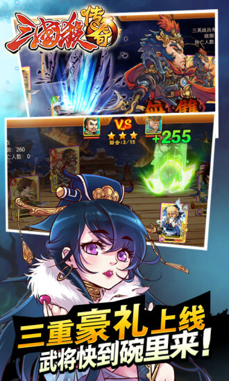 游戏以剧情闯关为核心玩法,这是卡牌游戏常见的模式;此外还设有玩家对抗内容,系统提供了抢夺、天梯赛、过关斩将、激战虎牢关等玩法。当副本冒险玩累了,玩家可以尝试与其他玩家抢夺资源,冲击世界排行榜名次,挑战BOSS副本以获取更多稀有道具。