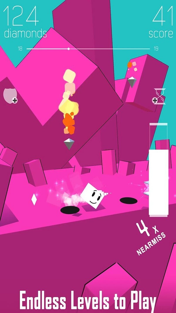 4、躲避方块君越到关卡深处,困难会更加的多,解锁整个关卡,获取更高的得分。