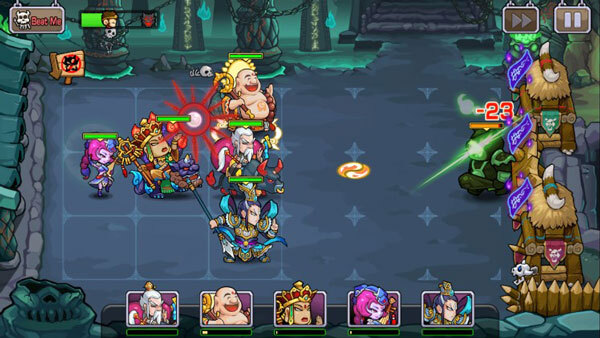 关卡进行可选择出战阵容,战斗中也能进行位置调换,技能发亮还能释放强力的技能。