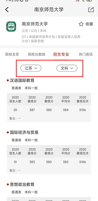 4、在南京师范大学查询江苏地区录取专业,让大家更好的选择专业。