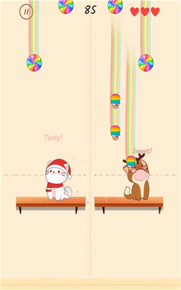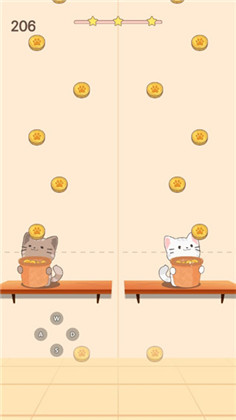 1、萌趣猫咪角色:游戏里的两只猫咪角色形象十分可爱,动作灵动活泼,自带一种亲近感。它们能依据玩家操作做出跳跃、踏步等各种趣味动作,使玩家在游戏过程中充分体会到与猫咪互动的欢乐。