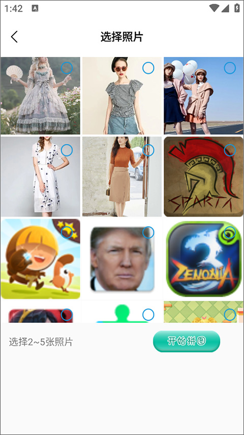 3、在拼接功能里,用户能够从相册中挑选2至5张图片来完成拼图。