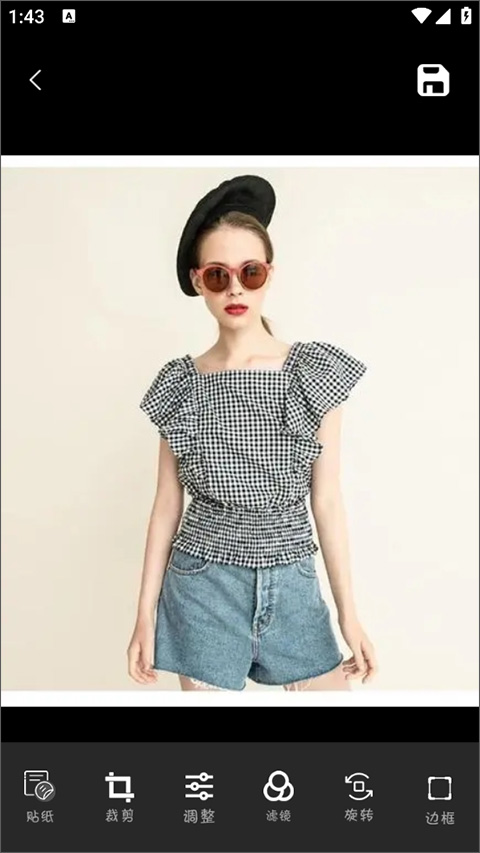 4、开启滤镜功能后,用户能够为图片添加精美的滤镜、贴纸等,并且能够对图片执行裁剪与旋转操作。