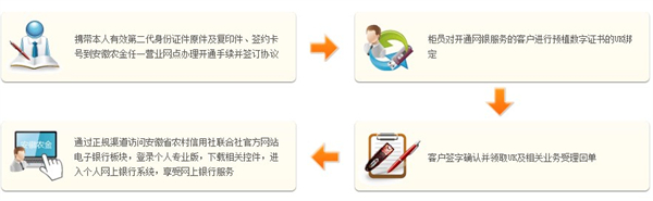 1请携带本人有效的第二代身份证件原件与复印件,以及签约卡号,前往安徽农金的任意一个营业网点,办理开通手续并签订相关协议。