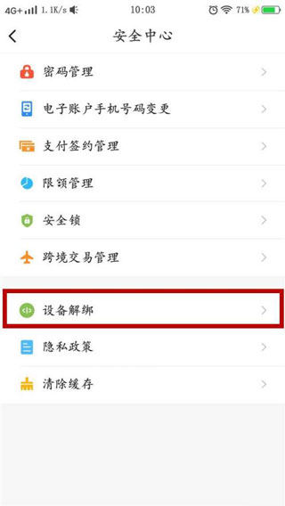 4、进入到安全中心,点击【设备解绑】。
