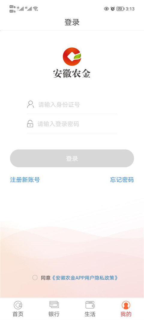 1、打开安徽农金手机银行最新版,点击右下角的【我的】。