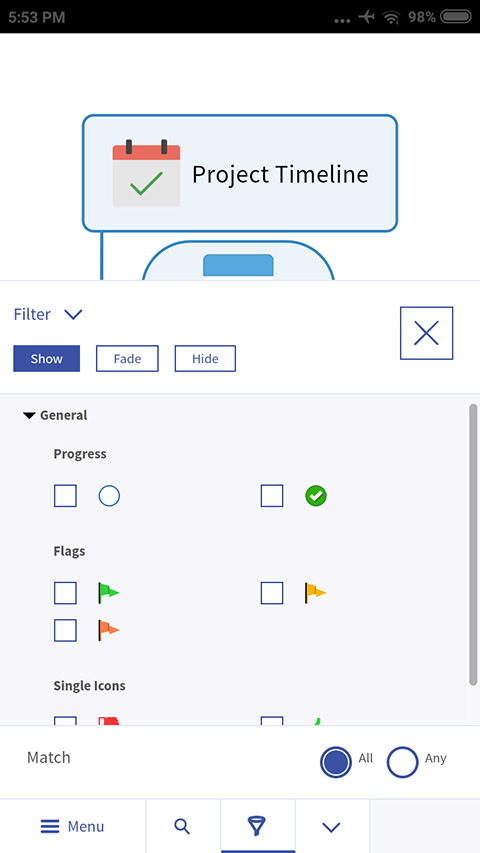 MindManagerGo中文手机版属于MindManager产品套件里面向移动设备的应用,它是在原mindjet mindmanager安卓版的基础上升级而来。借助这款应用,用户能够在手机上查看浏览MindManager文件,还支持远程查看存储于OneDrive、SharePoint、Google Drive等平台中的MindManager文件。