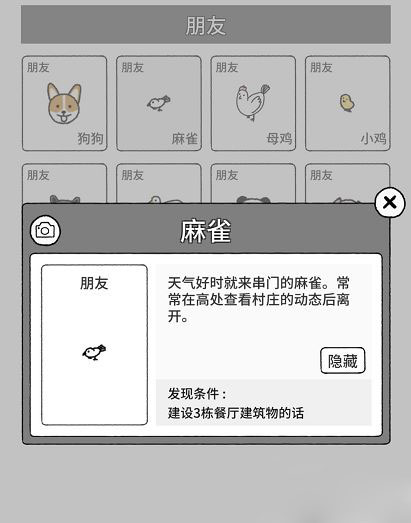 麻雀召唤条件:当你拥有三栋餐厅类建筑的时候麻雀就会出现。
