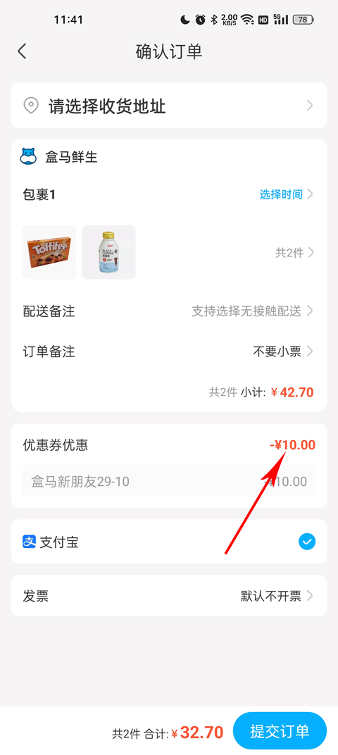 4、填写地址之后,使用优惠券进行付款,这样购买会更加优惠。