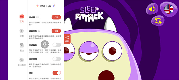 3、进入游戏后可以打开双开工具,开启你需要的模式,例如:汉化、录屏、双开分屏等。