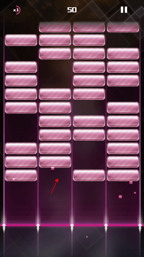 3、游戏玩法为点击屏幕,在一行中出现空缺之处补上砖块。当一行的砖块补充完整后,便会自动消除。每当成功消除一行砖块,就能获得相应分数。