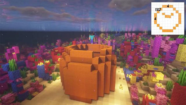 之前没提到,我们得先在海底找一块极为平整的地,接着才在上面动工建造。随后,我们要进行第二步,即墙面的整体建造。毕竟菠萝屋的主要结构颇为简单,就是菠萝的整体以及菠萝叶。