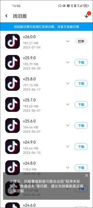 4、点击进入,即可看到抖音所有的历史版本,选择所需要的版本下载,并安装即可。