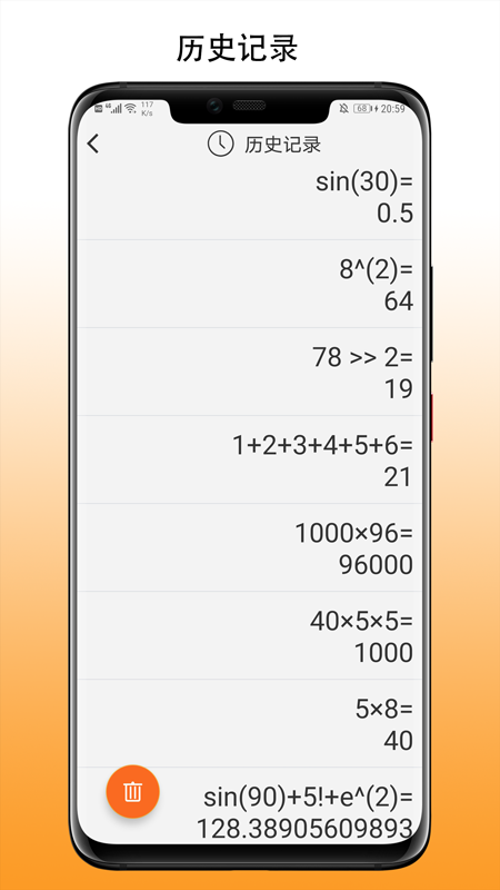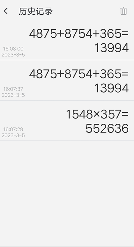 3、点击计算结果,进入历史记录界面,随后点击手机返回键,回到计算界面。