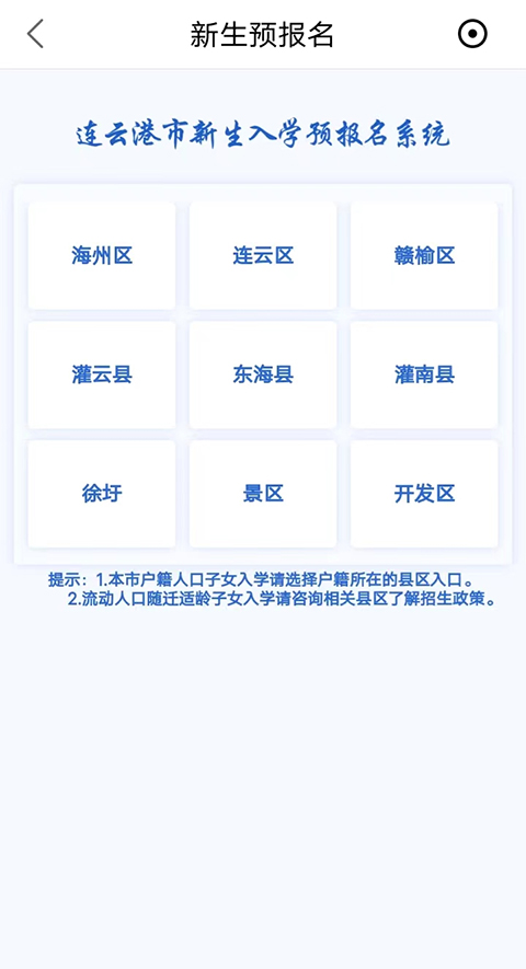 3、首先选择报名所在地区,之后就能开始进行信息填报。在填报过程中,学生、父母(或法定监护人)的户籍信息以及房产信息,都能从户口簿、房产证或者不动产权证上获取。需特别留意,在同一学段内,仅能报名一所学校,公办学校与民办学校不能同时兼报。为防止出现网络拥堵的情况,建议大家错峰进行填报。