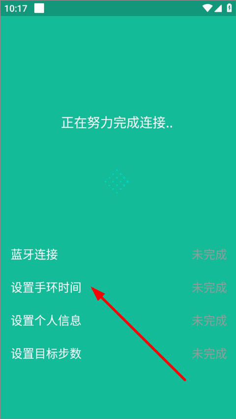 4、当进入连接页面,用户需进行设备蓝牙连接操作,并设置手环时间、个人信息以及目标步数等内容。待这些设置全部完成后,就能绑定设备。