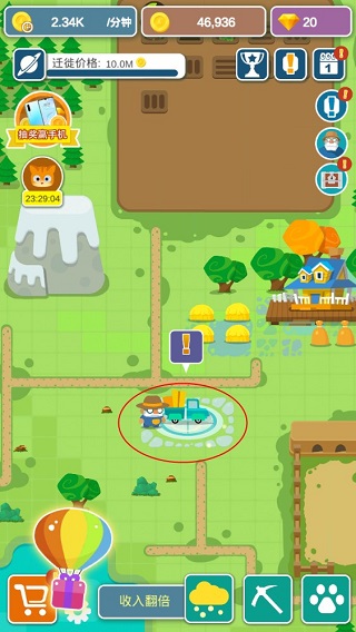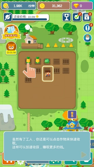 当感觉收获过程有些劳累时,点击此处雇佣工人,他们能帮您自动收取成熟的庄稼。即便有了工人,您依旧可以点击作物进行快速收取,如此能够加快收获速度,赚取更多收益。