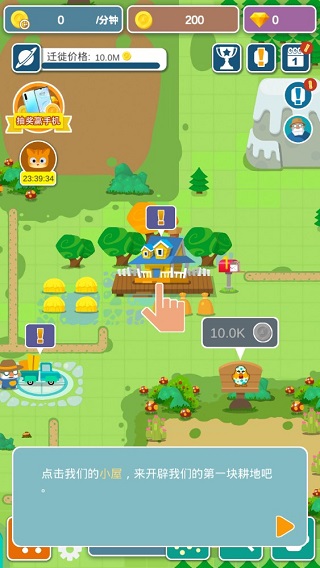 轻点“我们的”小屋,开启一片崭新的耕地。点击小屋后,会弹出一个窗口,这时选择修建农田,就能顺利完成对耕地条件的开发。此刻,耕地已清理完毕,接下来进行其他操作。这款游戏属于放置经营类,在操作上大多是自动化运行,玩家无需手动干预,比如农田会自动种植农作物,成熟后记得前来收获哟。
