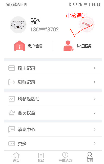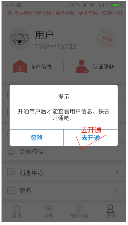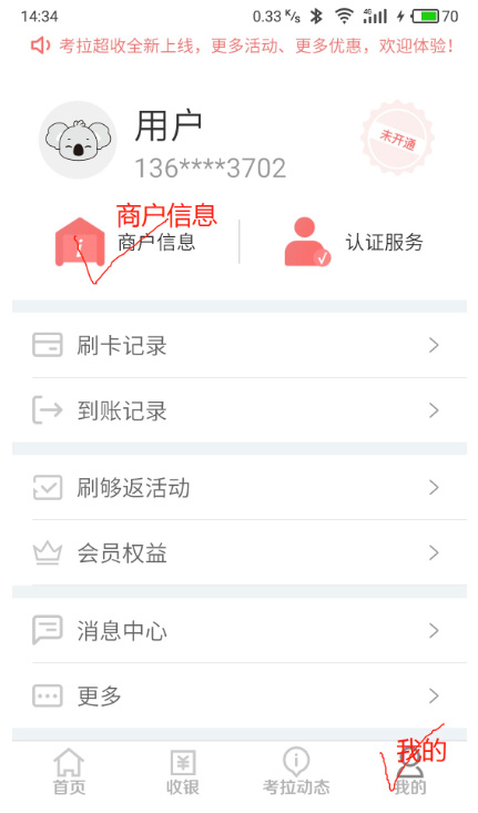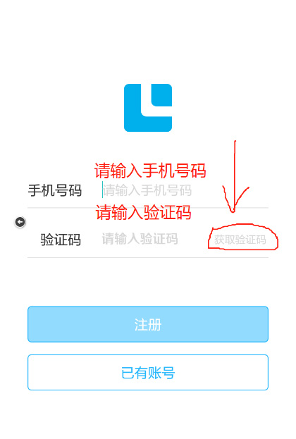 请打开考拉超收APP进行账户注册(若您此前使用过拉卡拉收款宝,那么请用原来注册的手机号登录),之后点击“已有账号登录”选项。