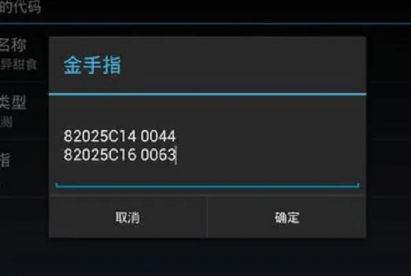 (5)比如“无限奇异甜食”金手指是:82025C140044、82025C160063,再点击“金手指”输入