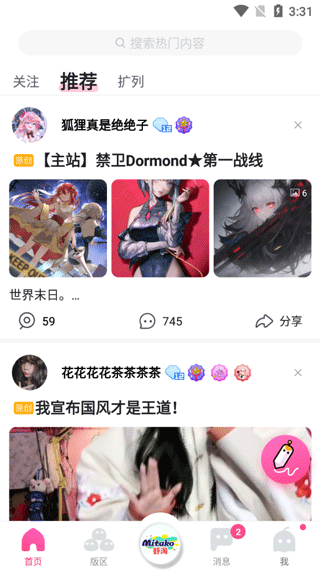【智能推荐资讯】猜你喜爱,推送当下热门动漫资讯,一同解锁吐槽的正确方式~人气官方版娘弹娘与弹妹,携手番剧、绘画、K、鬼畜、COS、《从零开始》、《进击的巨人》、《刀剑神域》、动漫资讯、V家、FATE、手工等各分区版主,陪你畅快玩耍!