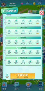 游戏里的医院,不仅设置了常规科室,还具备门诊部、住院部、检验科、急诊部等与现实医院别无二致的部门,而且每个部门都有着独特的玩法。你得积极统筹各个部门,招聘优秀员工,并充分调动他们的工作效率。