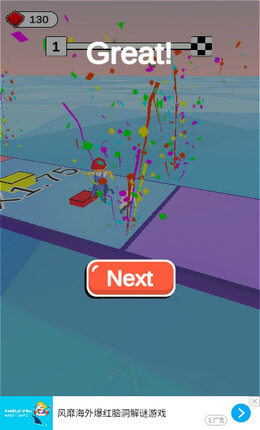 2、除了障碍物,沿途还有不少小道具可供使用,一次跳跃便能跨越多个积木方块。