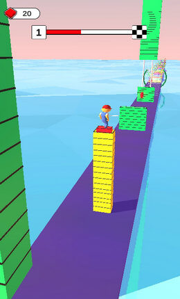 1、玩家将会看到多种多样的赛道闯关模式,在此过程中,需要持续堆叠不同颜色的方块,力求站得更高。