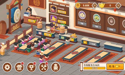 - 赚取铜板:当客人尽情享用完美食后,就能收获收入。随着收入逐步增多,记得持续对服务台进行升级,并研究开发新菜品。如此一来,客栈得以不断完善,从而赚取更多的铜板与元宝。