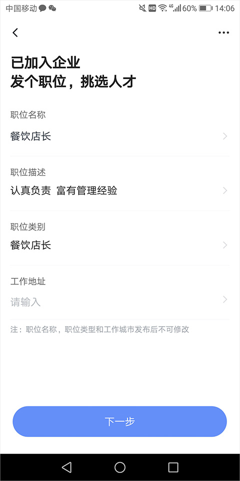 6、在打开的新页面中,如果显示为【已加入企业】,则表示完成了初步认证,可以先在这个页面中发布职位