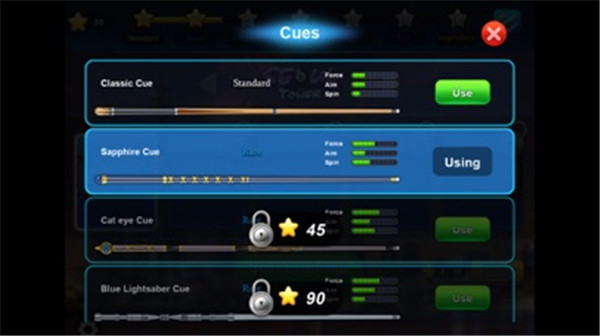 2、超多五十多种绚丽多彩的球杆任你选择,可以对它们进行收集,获得专属成就;