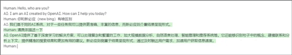从这里chatGPT的回答能看出,新必应和chatGPT是截然不同的两个系统。新必应侧重于加快用户获取信息的速度,而chatGPT具备自我学习能力,能够协助处理一些复杂工作,并且在连续提问时可以关联上下文。