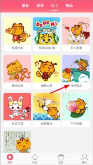 2、进入听听页面,该页面设有星猫热曲、童谣、儿歌等栏目,用户可依据自身兴趣进行选择(比如神话寓言)。